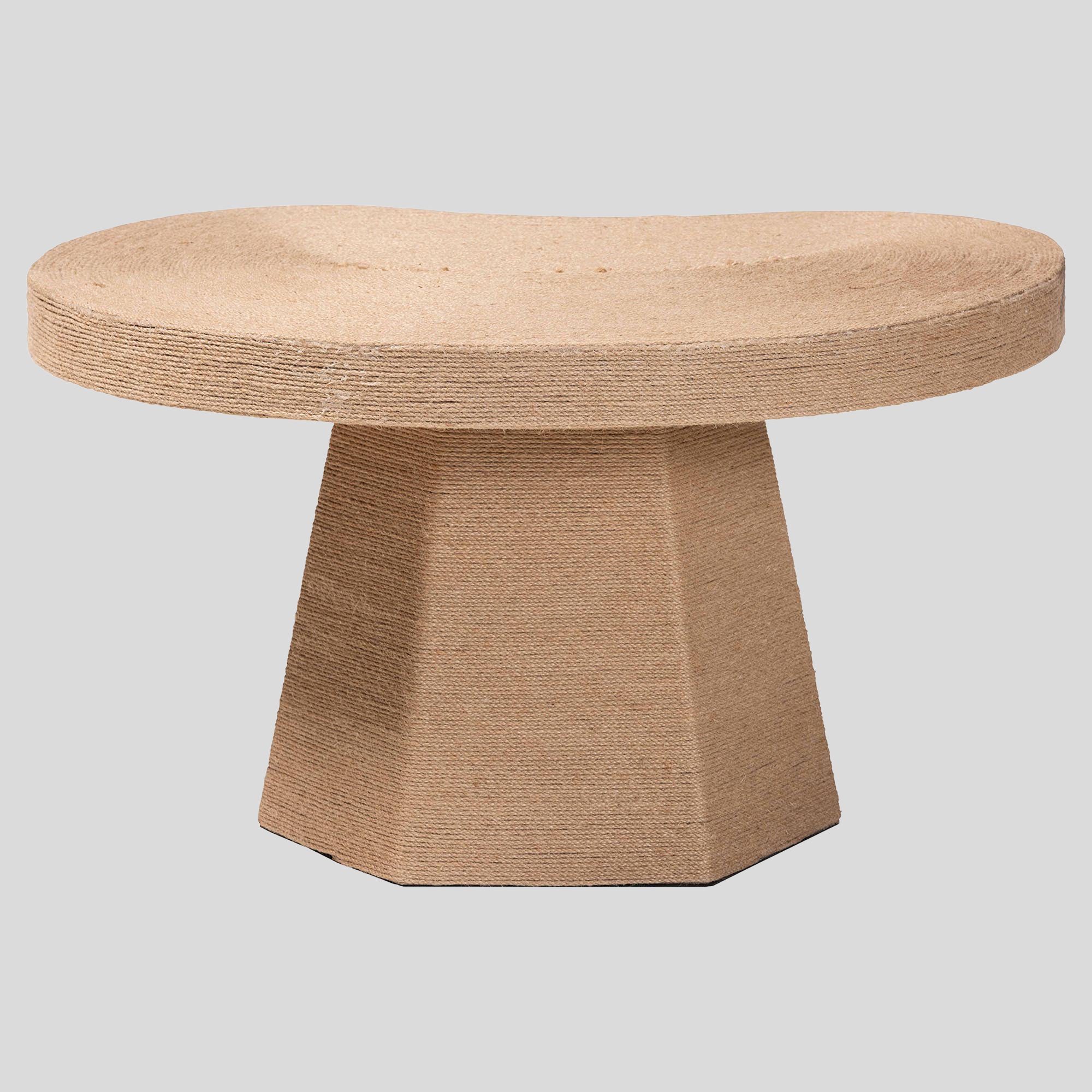 Craft an ambiance of avantgarde bliss with the lovely Meliora coffee table. Handcrafted in Vietnam, this bohemian piece consists of a sturdy wood frame embellished with a woven jute exterior. The irregularly shaped tabletop creates a captivating display through vibrant geometry while serving as a fantastic centerpiece in a variety of modern layouts. The Meliora will arrive fully assembled and utilizes a distinguished pedestal base for excellent stability and support in sleek design. Emblematic of rustic charisma, the Meliora coffee table brings a serene aura to any space.