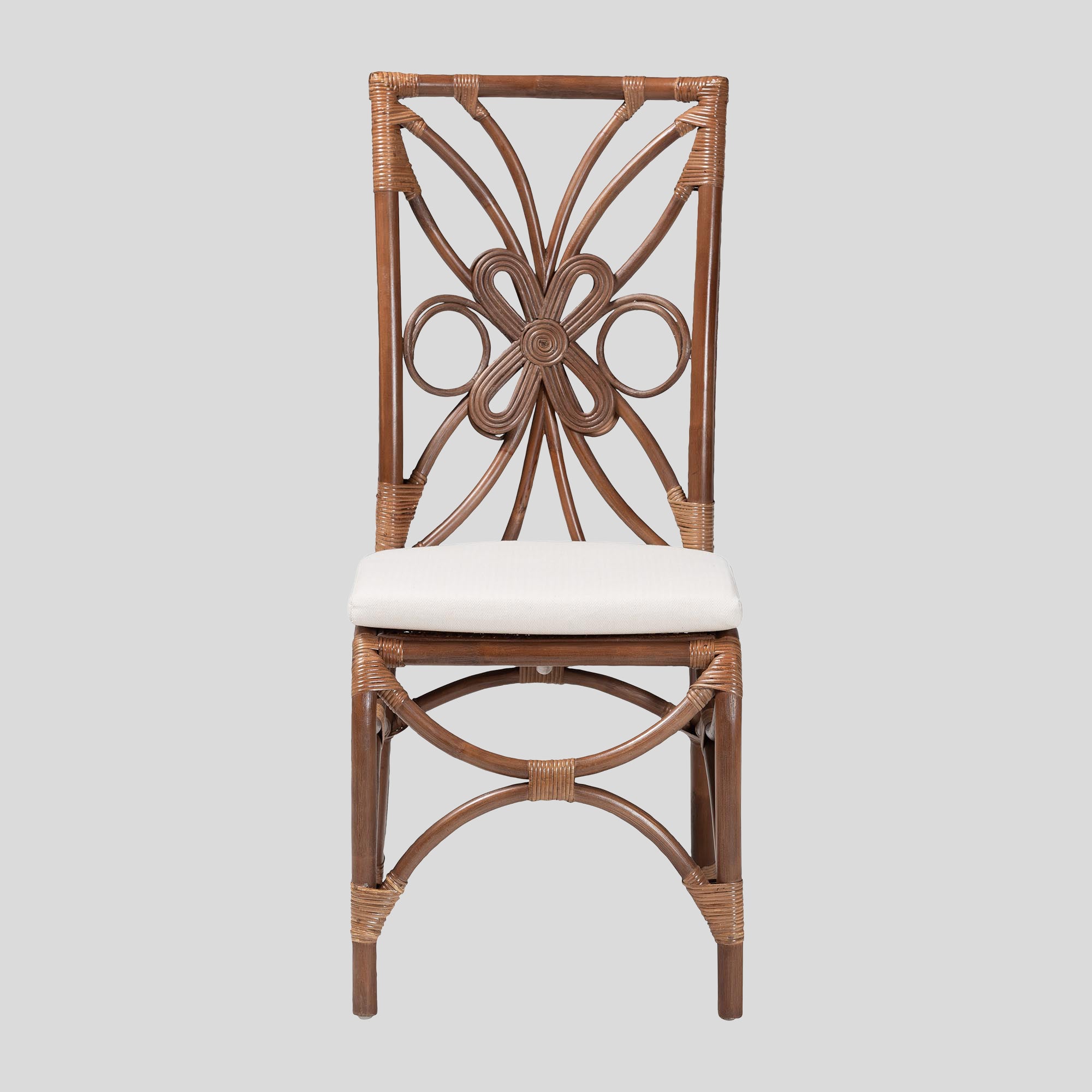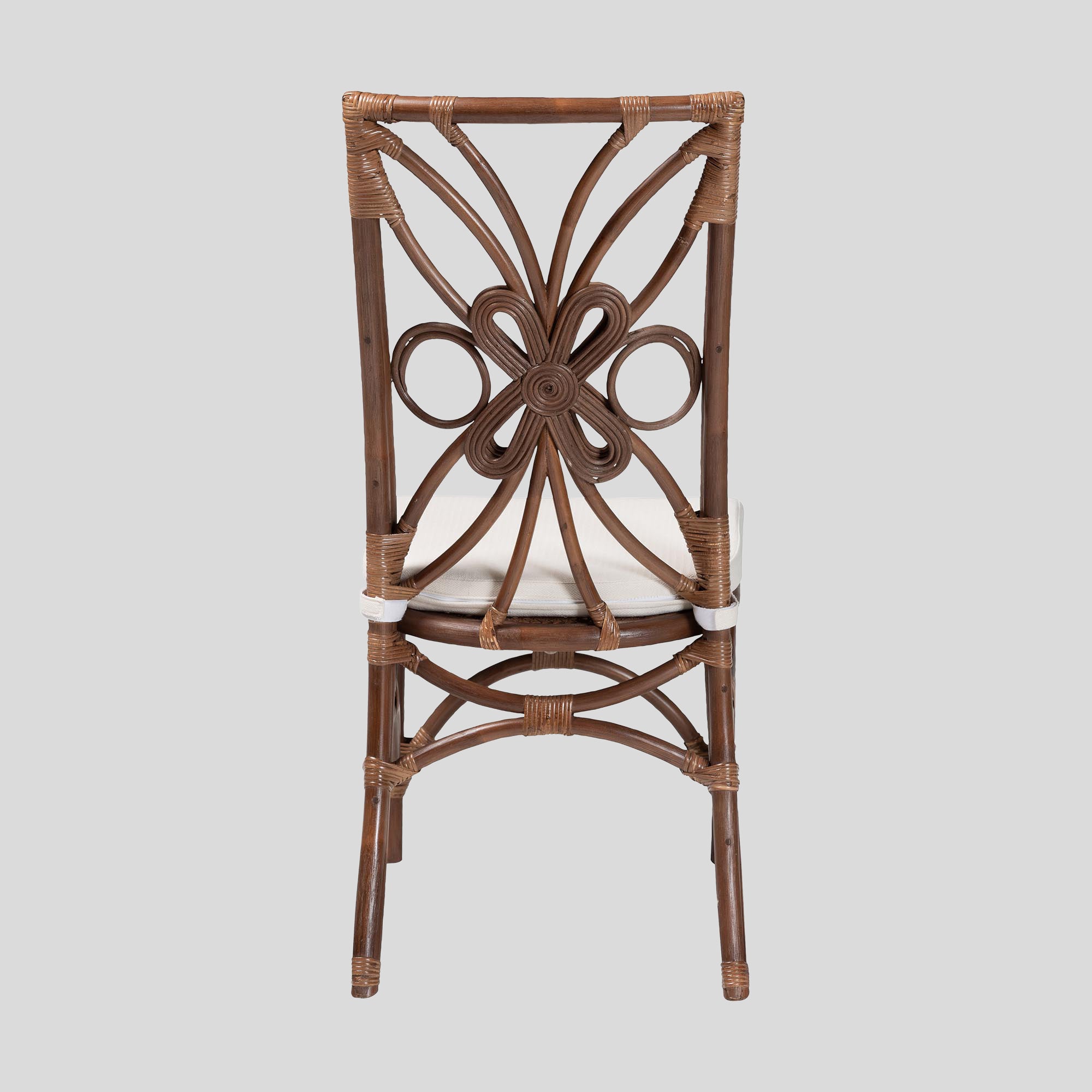 Engross every occasion in an aura of rustic serenity through the lovely Selah dining chair. Made in Indonesia, this bohemian piece is handcrafted from sustainably sourced natural rattan. Its backrest features a wonderful openwork design arranged with rattan pole for a vibrant display reminiscent of floral beauty. The Selah will arrive fully assembled and is fitted with a removable seat cushion padded with plush foam and upholstered in sumptuous fabric. Delivering excellent comfort in an airy and lightweight design, the Selah dining chair tactfully embellishes any arrangement.